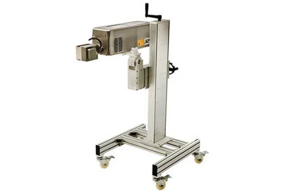 serial numbering and more. It is quick and easy to install for both stationary and moving products and easily fits into production environments where space is limited. The laser head can be rotated 90° in less than 5 minutes